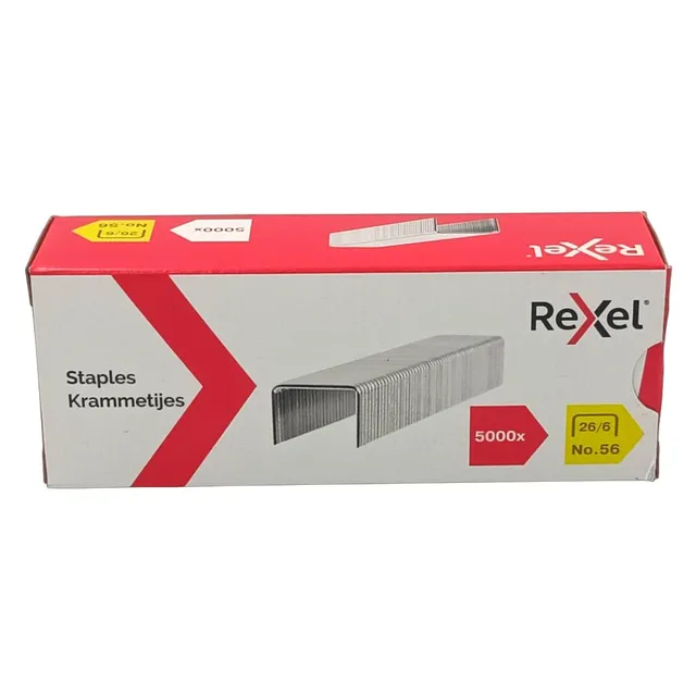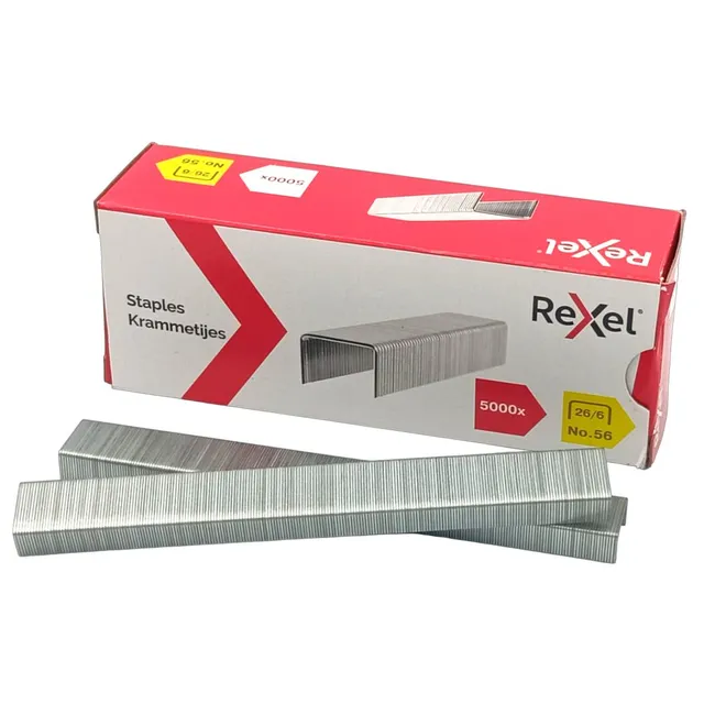 Rexel No. 56 (26/6) staples offer reliable performance and precision for all your stapling needs. Packed with 5000 staples per box, these high-quality staples are designed for use in a variety of environments, from the office to home and school.
