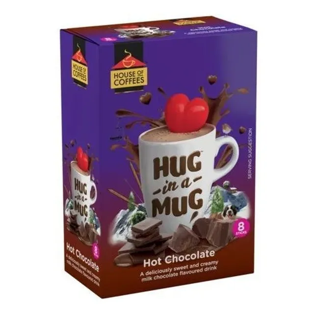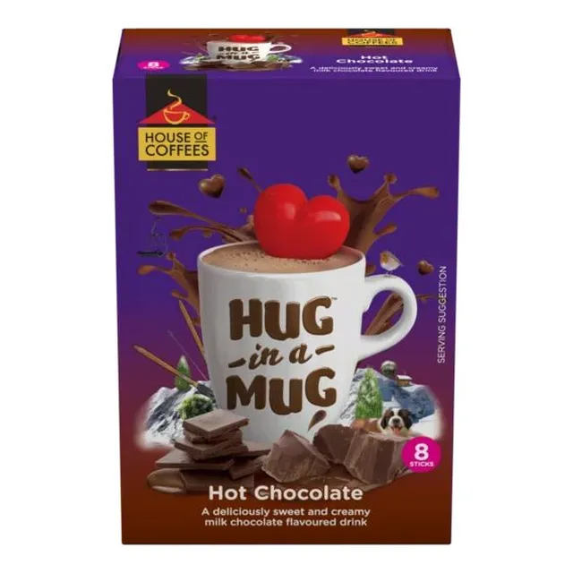 House of Coffees Hug In A Mug Hot Chocolate Box of 8 delivers a creamy, indulgent chocolate drink for cosy moments.