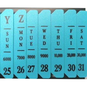 - Includes: A-Z, 1-31, January – December, Monday – Sunday, 0 – 30 000
