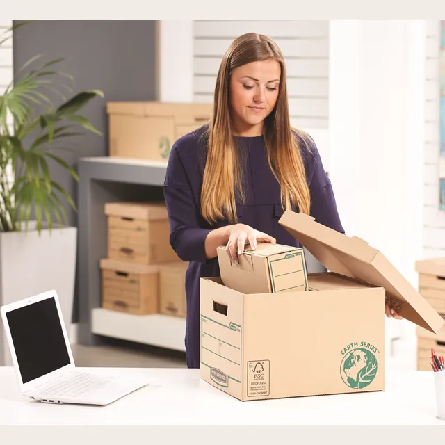 Bankers Box Earth Series Large Offsite Storage Box – Pack 10 is the bulk option for records rooms, offering matching deep boxes with lids and strong handles for consistent offsite archiving and easy stacking.