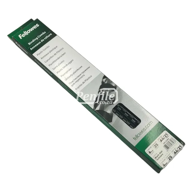 Fellowes Binding Combs Round 20 Sheet 6mm Black gives small A4 documents a neat, professional comb-bound finish and works with standard 21-loop plastic comb binding machines.