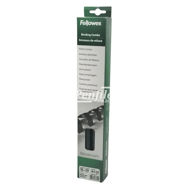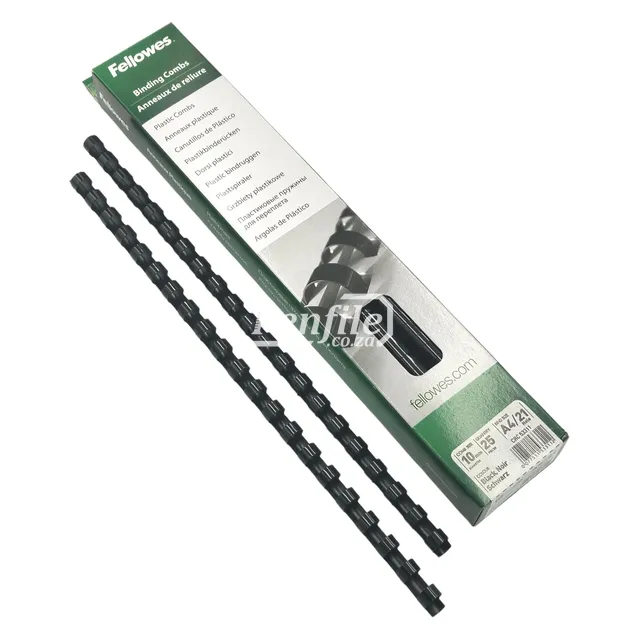 Fellowes Binding Combs Round 55 Sheet 10mm Black is ideal for binding thicker A4 documents neatly and works with standard 21-loop plastic comb binding machines.