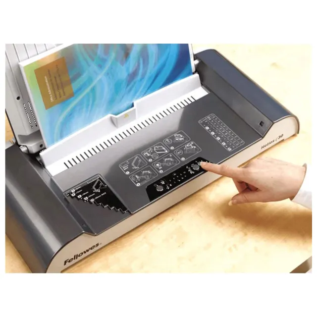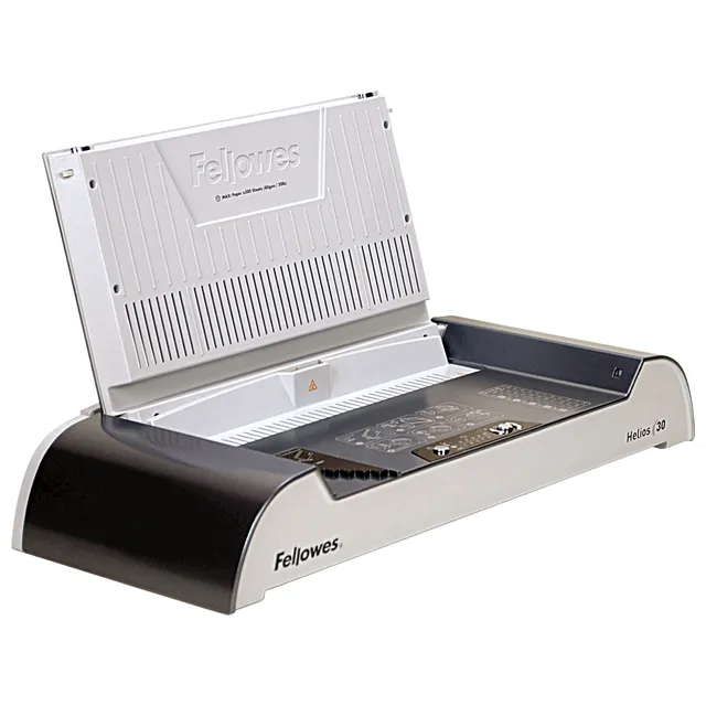 Fellowes Helios 30 Thermal Binding Machine gives documents a clean book-style finish fast. It binds up to 300 sheets with a quick warm-up and variable heat cycles, making it ideal for office reports, manuals, and proposals.