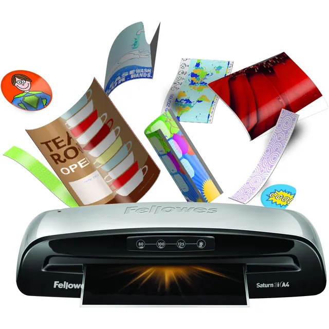 Fellowes Saturn 3i Medium Use A4 Laminator is built for frequent office laminating, delivering ultra-fast warm-up, jam-free operation and consistent professional results with intelligent AutoSense technology.