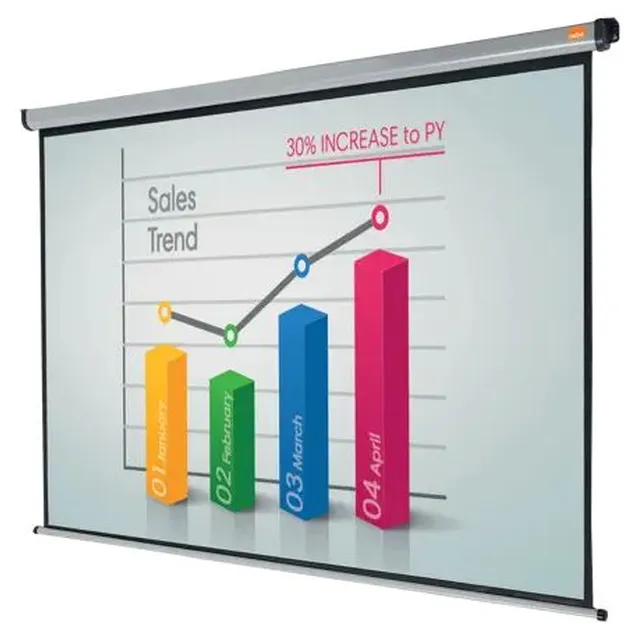 Get sharp, vibrant visuals with the Nobo Wall Mounted Projection Screen in 4:3 format. Ideal for offices or home setups, it features a matte white surface for clear images and offers versatile mounting with excellent visibility from all angles.