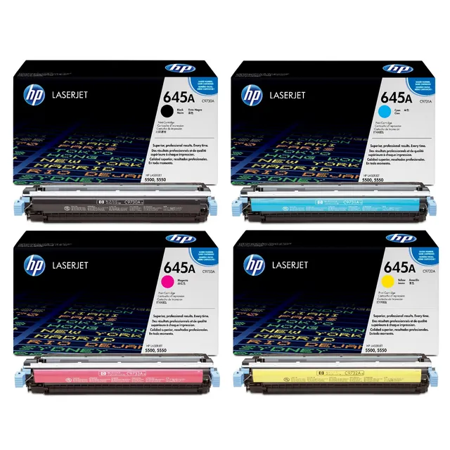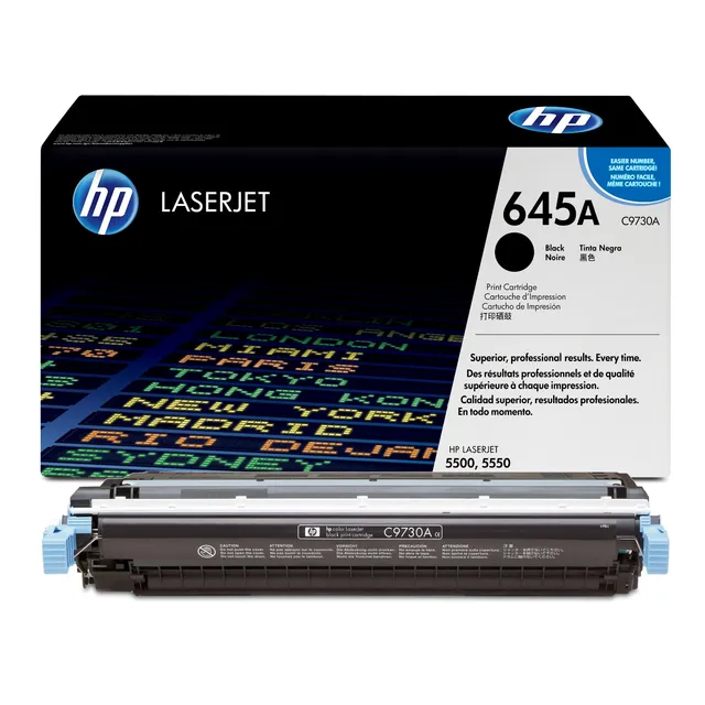 The HP 645A Toner Cartridge – Black delivers professional-quality black text and graphics with consistent performance for office printing.