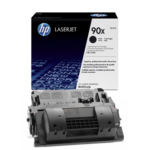 Achieve high-volume, professional black prints with the original HP 90X high-yield black toner cartridge, designed for busy office environments.