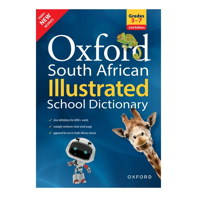 Oxford South African Illustrated School Dictionary is a visually engaging reference for learners, combining clear English definitions with illustrations to support vocabulary and comprehension.