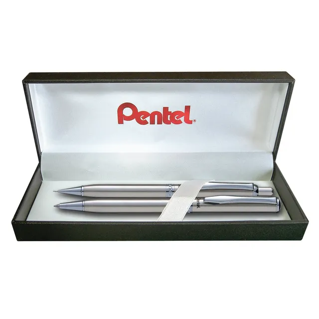 Pentel BA811 Sterling Ballpoint Pen & Pencil Gift Set – Silver Barrels